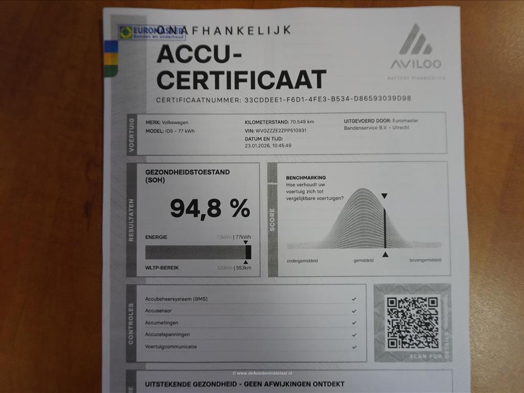 Rijkelijk uitgevoerde Volkswagen ID.5 77 kWh | Panoramadak | Adaptieve cruise control + lane departure met stuurcorrectie | MATRIX LED | 360 (TopView) camera | Lederen bekleding (velours middenbaan) | Sfeerverlichting | Stoelverwarming | Verwarmd stuurwiel | APPLE CarPlay/ Android Auto/ DAB audio/ Blue Tooth interface | Privacy glas achter | Dakspoiler | Afwijkende dakkleur (zwart) met zilver metallic daklijsten | Fabrieksgarantie 2-2028 | HV Batterij garantie 2-2031 of 160.000km | SOH 94.8% | achterbank in delen neerklapbaar, achterbank met armsteun en skiluik,